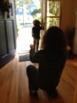 “Playground. Sticks. Cake. Mommy.” He gets it and nods, but still remains fixed to my side. I walk, with him attached like we’re in a potato sack race, to where some of his friends are building with blocks. Immediately, he drops to the floor and starts playing. Deep inward mommy sigh of relief. I kiss the top of his head goodbye, and he immediately stops his play to hug me vigorously.